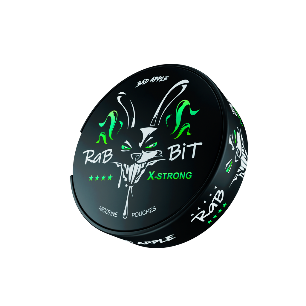 Rabbit Bad Apple 50mg Nicotine Pouches ,Sharp green apple flavour with 32.5mg nicotine per pouch. Slim, bold, tobacco-free and strong.