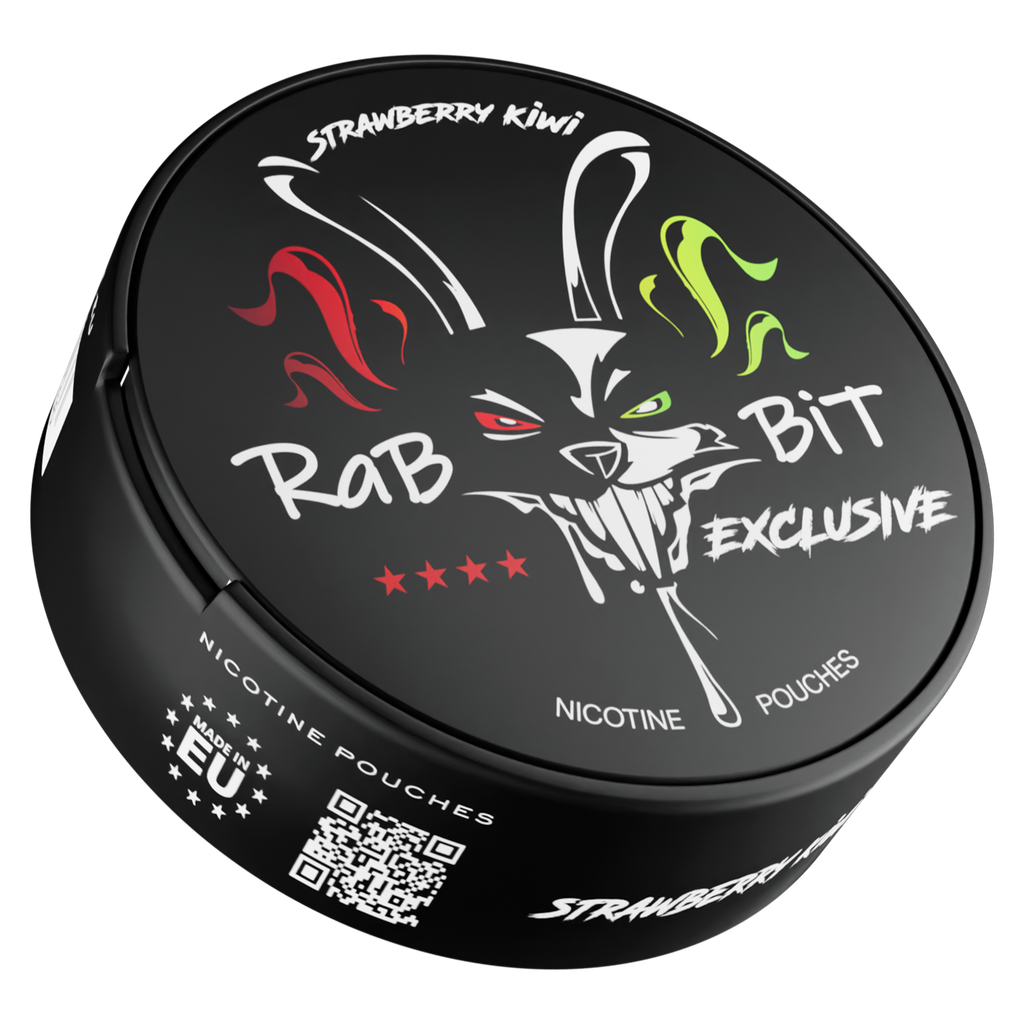 Rabbit Strawberry Kiwi fuses tropical strawberry and kiwi in a slim, tobacco-free pouch.