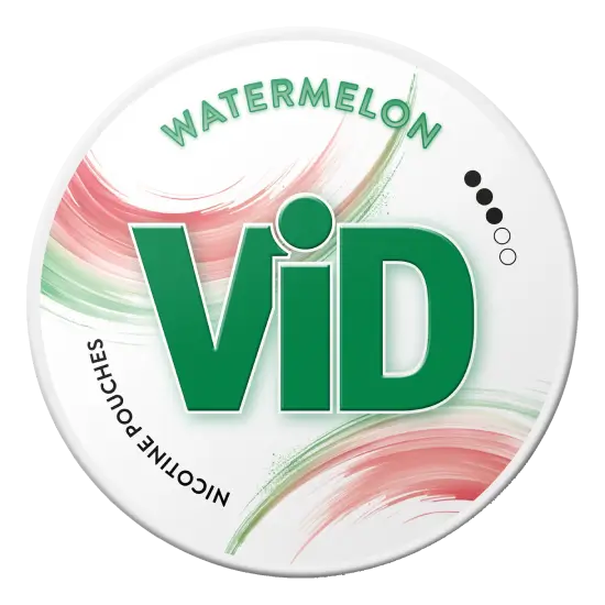 VID Watermelon Slim is a slim white nicotine pouch with fresh watermelon flavour and normal 7.2 mg nicotine per pouch, perfect for summer vibes.